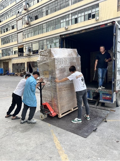 Henkilöstömme pakata tavarat ja siirtää ne kuorma -autoon.