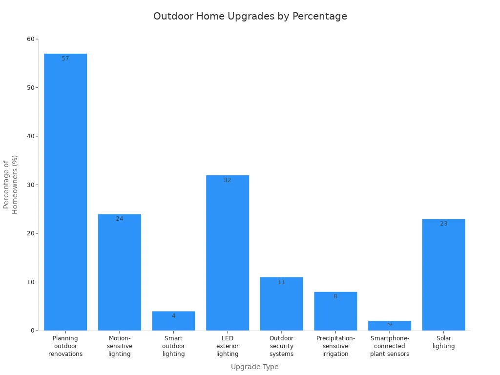 Älykäs tekniikka helpottaa ulkovalojen käyttöä. Voit ohjata valoja puhelimella tai äänellä. Monissa järjestelmissä voit asettaa valojen syttymis- ja sammutusaikoja. Tämä säästää energiaa ja pitää kotisi turvallisempana. Voit myös muuttaa valojen kirkkautta tai värikkyyttä.